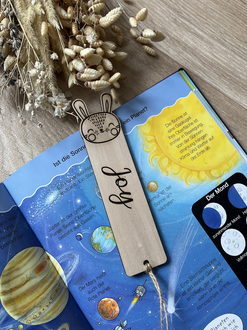 Erstelle ein Lesezeichen für dich persönlich oder als Geschenk. Wähle ein Motiv aus und personalisiere das Lesezeichen mit deinem Wunschtext.
